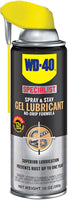 WD-40 Specialist® Gel Lube No-Drip Formula offers 12x longer-lasting lubrication when compared to WD-40® Multi-Use Product . Designed for superior protection that resists water and displaces moisture to prevent rust for up to one year.* This gel goes on thick and stays where you spray, making it ideal for use on vertical surfaces and offers non-fling for moving parts such as gears, bearings, cables, chains, rollers and more. Once applied withstands temperature ranges from -100°F to 500°F. Safe on multiple surfaces including metals, plastic and rubber.