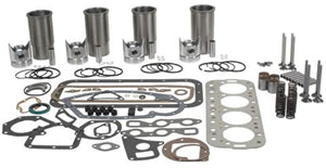 Tru Power Engine Kit. 4-Cylinder Gas. 123 CID, 3-1/8 inch standard Bore, 3-1/4 inch Overbore, Stepped-Head Piston. 7-1/16 inch Cylinder Sleeve Length, 3-7/16 inch O.D. at Seal. 4-57/64 inch Valve Length. Engine Overhaul Kit, less bearings. Contains sleeves & sleeve seals, pistons & rings, pins & retainers, pin bushings, complete gasket set, crankshaft seals, intake & exhaust valves, springs, guides, valve keys. For 100 series, 200 Series, Super A-1 Series (prior to S/N 310300), Super AV-1 Series (prior to S/N 310300), Super C Series.